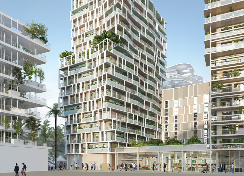 Au rez-de-chaussée, des commerces et des services vous accueillent. Le patio intérieur offre un espace verdoyant, véritable oasis végétale au coeur de la ville. Au pied de l’immeuble, la station de tramway Méridia sur l’avenue Simone Veil vous invite à circuler en toute liberté.